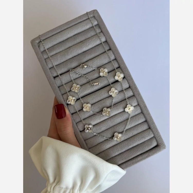 ست اکسسوری ونکلیف نقره ای ، گردنبند ونکلیف گل نقره ای ، دستبند گل نقره ای ونکلیف