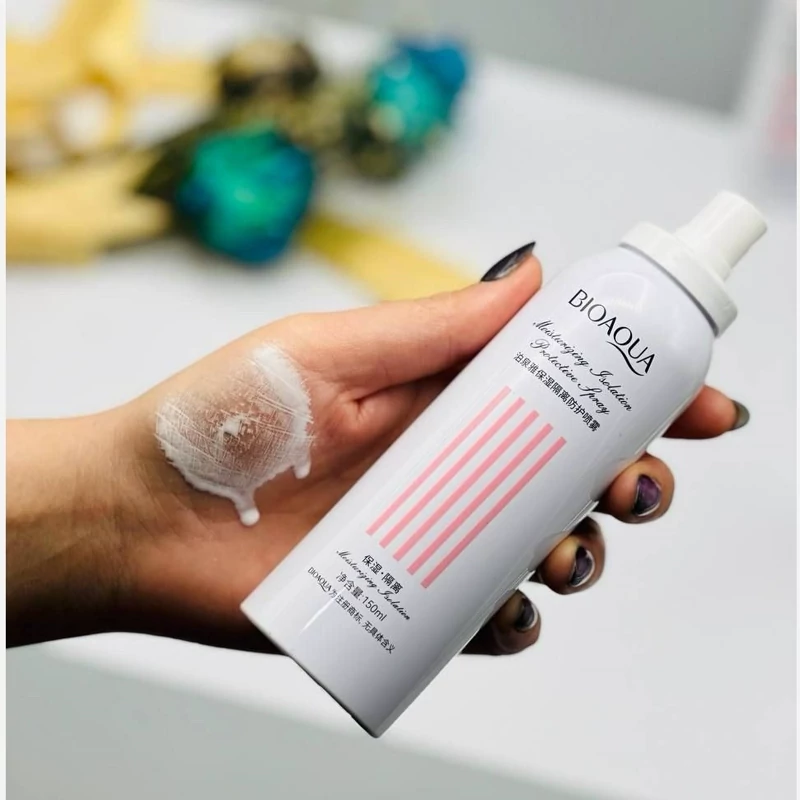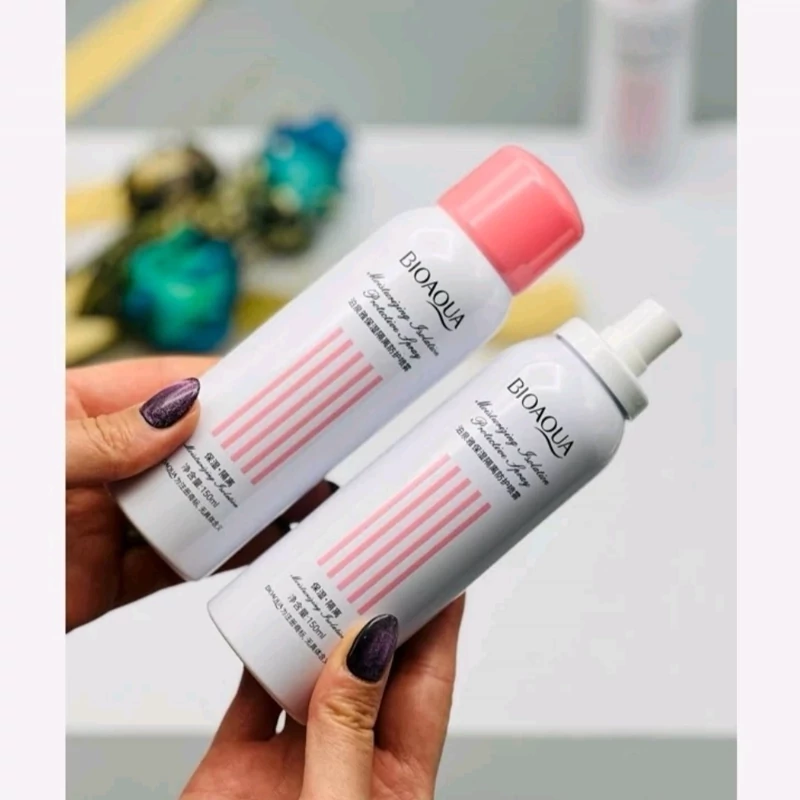 اسپری ضد آفتاب و روشن کننده برند بیوآکوا حجم۱۵۰ میل سرشار از عصاره ی انار سفید کننده روشن کننده بدون چربی مقاوم در برابر اشعه مضر خورشید