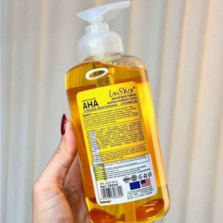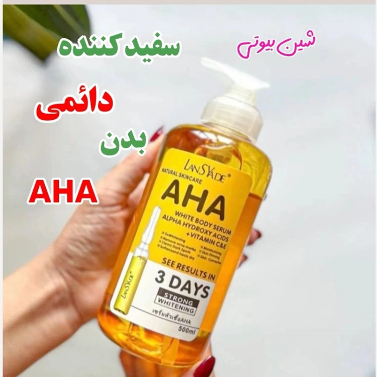 سرم سفید کننده بدن AHA (روشن کننده دائمی، رفع تیرگی و جای جوش) 500 میل (آرایشی شین بیوتی)
