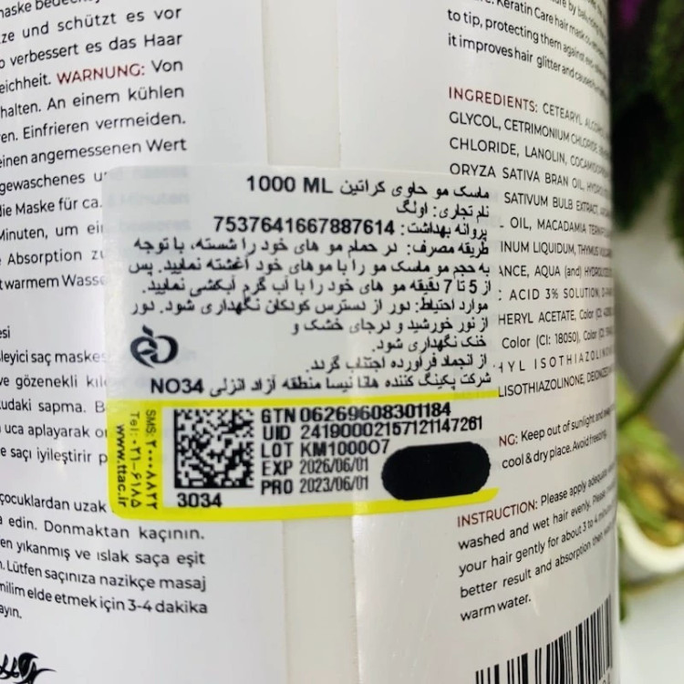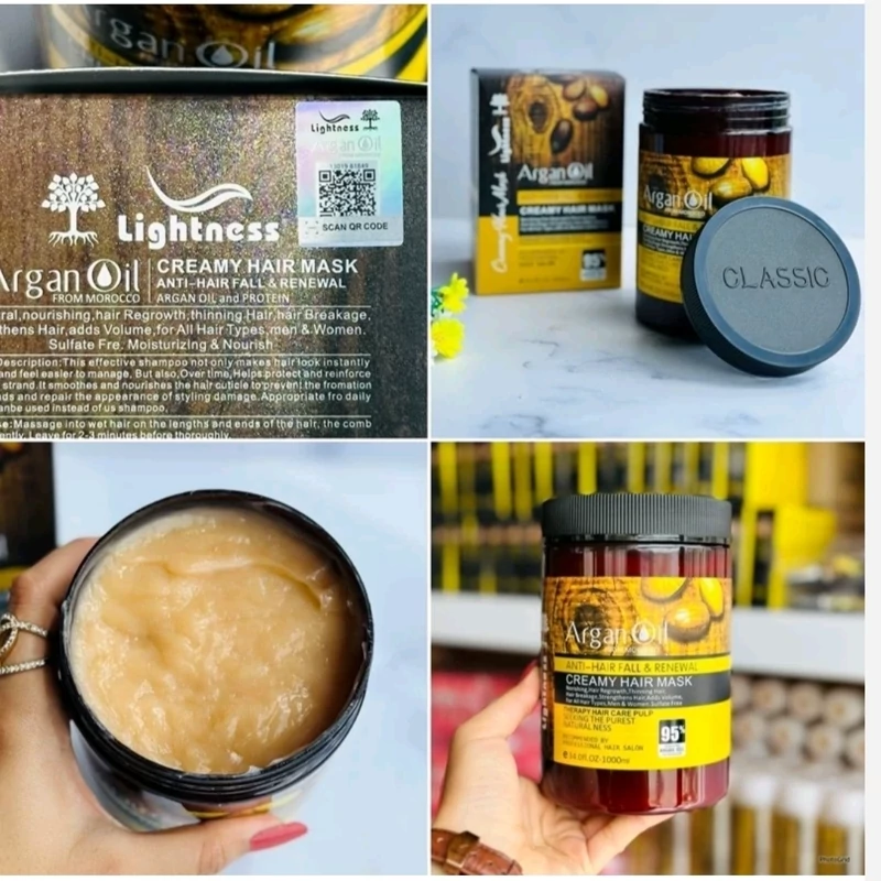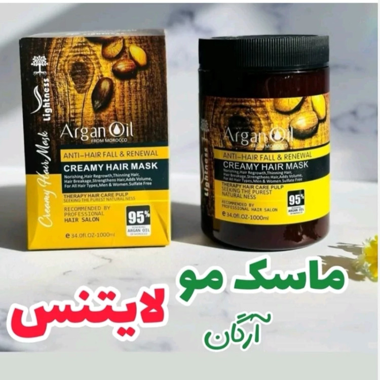 ماسک مو آرگان لایتنس یک لیتری بدون سولفات کارتن دار جلوگیری از ریزش مو و نرم کننده و تقویت کننده مو(آرایشی شین بیوتی)