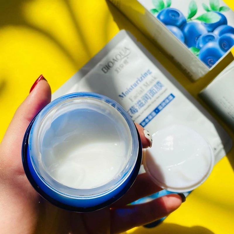 کرم تخصصی آبرسان و جوانساز بلوبری برند بیوآکوا حجم50گرم آبرسانی عمیق پوست نرم کننده و روشن کننده رفع تیرگی پوست بافت بسیار سبک کنترل چربی پوست