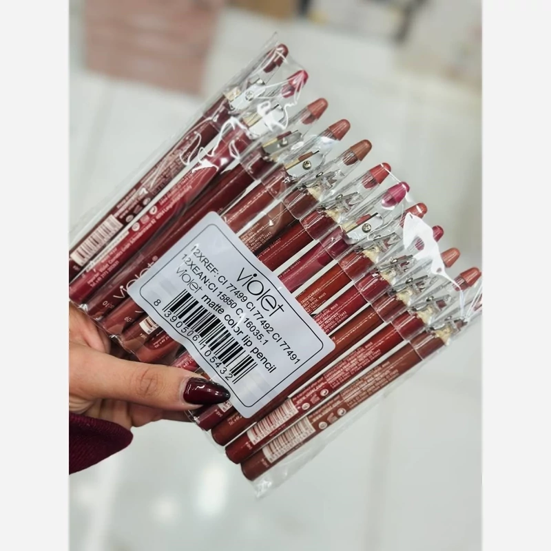 پک 12 عددی رژلب مدادی ویولت (نرم و روان) رنگ نود آرایشی شین بیوتی