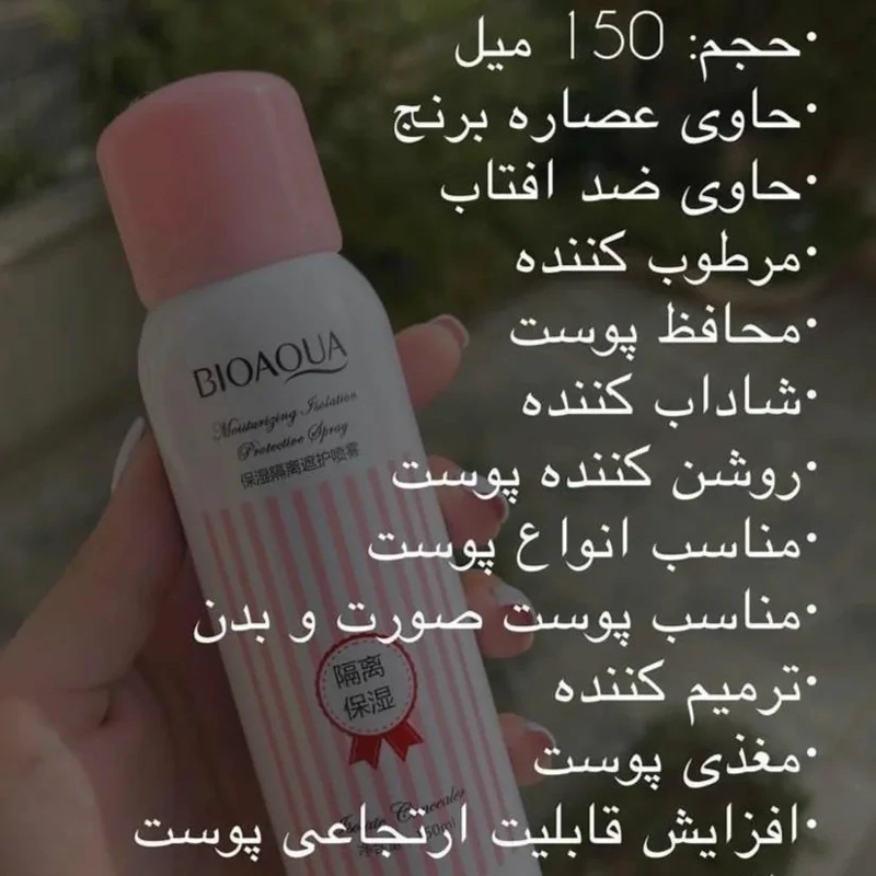 اسپری ضد آفتاب بیوآکوا سرشار از عصاره انار است ک این ویژگی به این ضد آفتاب در کنترل چربی پوست کمک میکند و در عین حال پوست را آبرسانی و شفاف و روشن میکند.