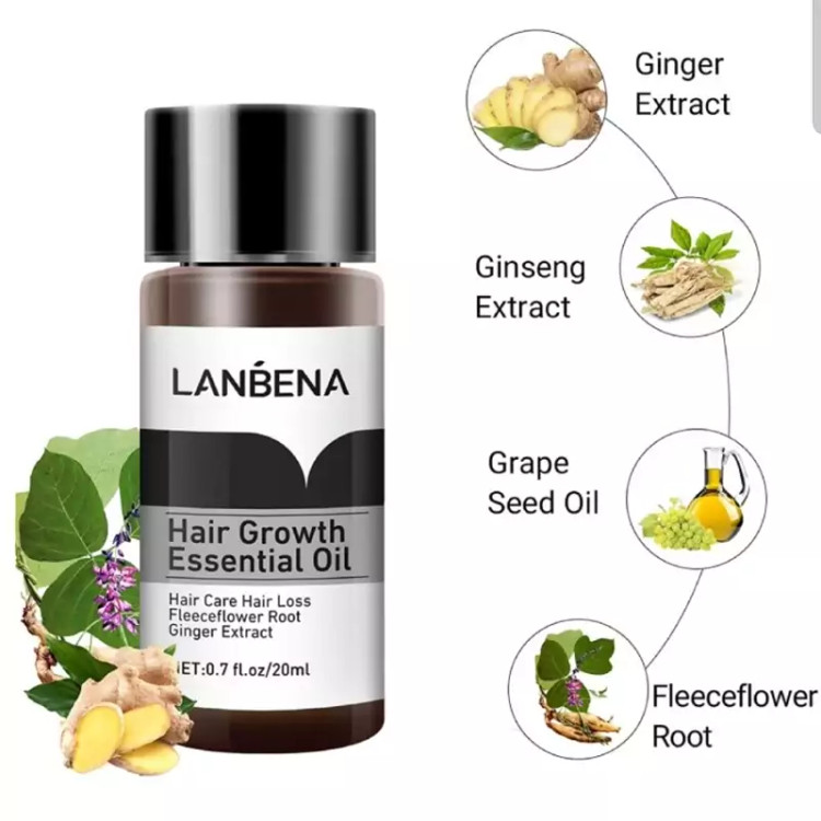 سرم تقویت مو لانبنا LANBENA Hair Growth Essential Oil افزایش و تسریع در رشد مو تغذیه کننده ریشه مو ترمیم موهای آسیب دیده جلوگیری از ریزش مو تقویت و تحریک فولیکول مو حاوی عصاره زنجبیل، جنسینگ جلوگیری از طاسی سر تقویت ریشه مو (افزایش استحکام ساقه موهای نازک شده)
