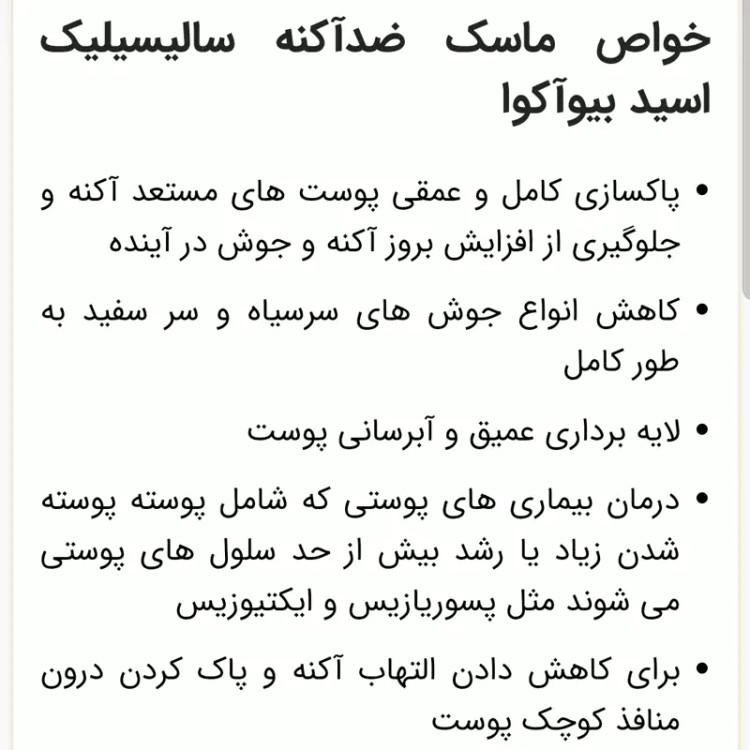 ماسک سالیسیلیک اسید بیوآکوا اصلی (ضد جوش و مناسب برای پوست جوش دار و مستعد جوش)(آرایشی سارینا)