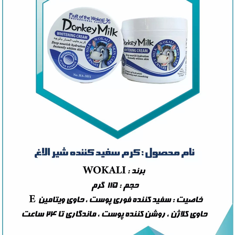 کرم سفید کننده صورت و دست شیر الاغ سفید کنندگی تضمینی و درجه یک کیفیت عالی ، سفیدکندگی فوق العاده. 115 گرم آبرسانی قوی پوست. سفید کننده فوری پوست. روشن کننده پوست. حاوی ویتامین E. ماندگاری بالا