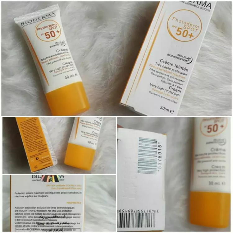 کرم ضد آفتاب بدون رنگ فتودرم اسپات ⁺SPF50 بایودرما 30 میلی لیتر اورجینال 💯 💸قیمت: 370,000 ✅ ضدافتاب بیو درما اسپات ❇️ بر طرف کننده قوی لک ❇️ مناسب هر نوع پوست حساس ❇️ مناسب در برابر اب و تعریق ❇️ اصلی و تضمینی خواص و ویژگی های کرم ضدآفتاب فتودرم اسپات بایودرما * جلوگیری از تجمع رنگدانه در پوست که مانع ایجاد لک و برجای ماندن جای جوش و زخم (اسکار) می شود. * محافظ قدرتمند پوست در برابر تابش اشعه های UVA و UVB * فعال کننده و تقویت کننده سیستم دفاعی طبیعی پوست که منجر به کاهش احتمال آسیب دیدگی های سلولی و مبارزه با پیری پوست می شود. (این عملکرد بواسطه ی پتنت انحصاری Cellular Bioprotection است.) * دارای عملکرد دوگانه ی منحصر به فرد؛ ضد آفتاب و ضدلک * براساس مطالعات بالینی این محصول قادر است تجمع ملانین را تا 41% ظرف مدت 4 روز کاهش دهد. * فاقد عطر و مقاوم در برابر آب و تعریق * دارای فیلترهای مقاوم در برابر تجزیه که اصطلاحا فوتواستیبل نامیده می شوند. (Photostable) * غیرجوش زا ضدآفتاب فتودرم اسپات بیودرما فاقد عطر و ترکیبات آلرژی زاست و میتواند دور چشم نیز استفاده شود. ضدآفتاب فتودرم اسپات بیودرما فاقد پارابن بوده و در آن از فنوکسی اتانول و کلرفنزین به عنوان نگهدارنده استفاده شده است کرم ضدآفتاب بیودرما اصل فرانسه💯